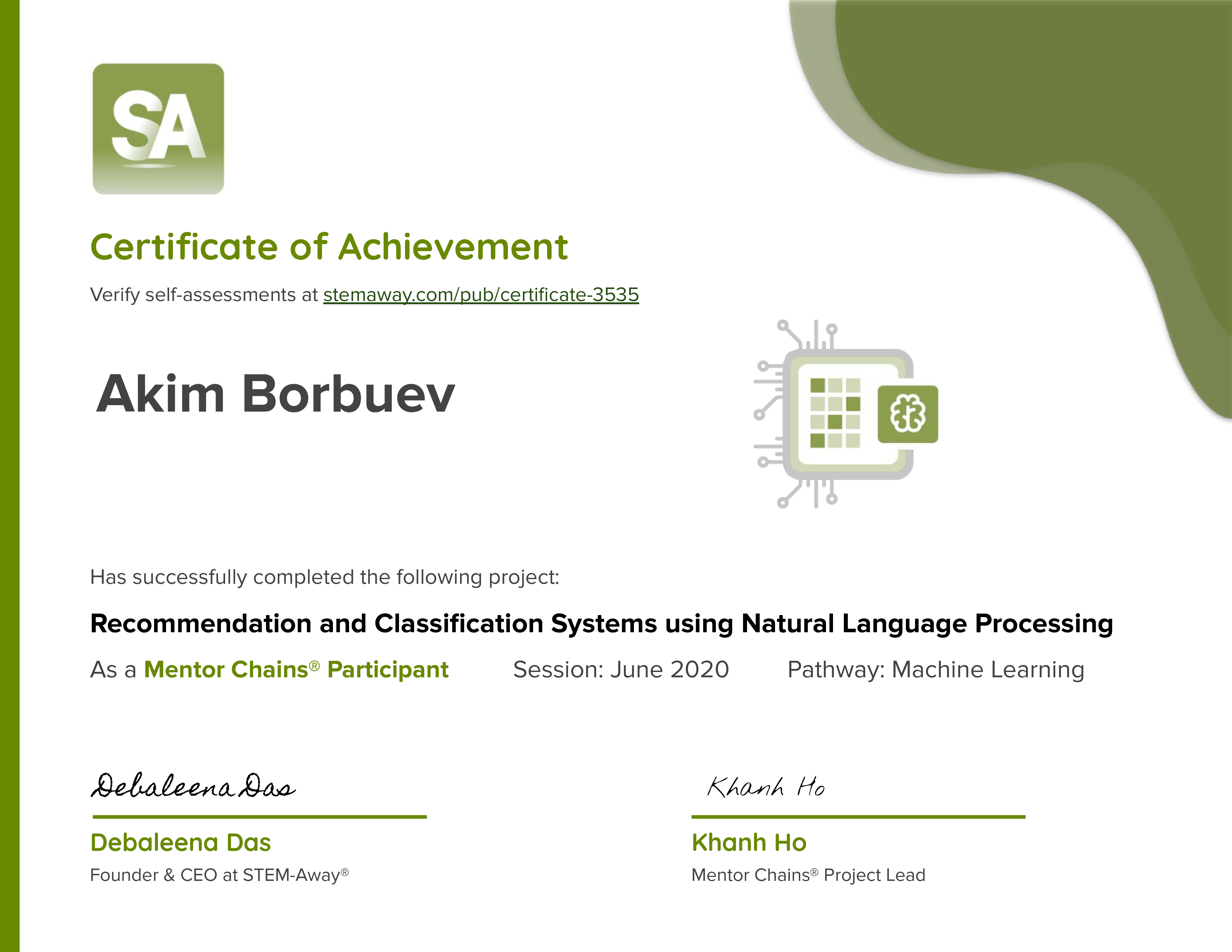 Certificate 3535 for Akim Borbuev