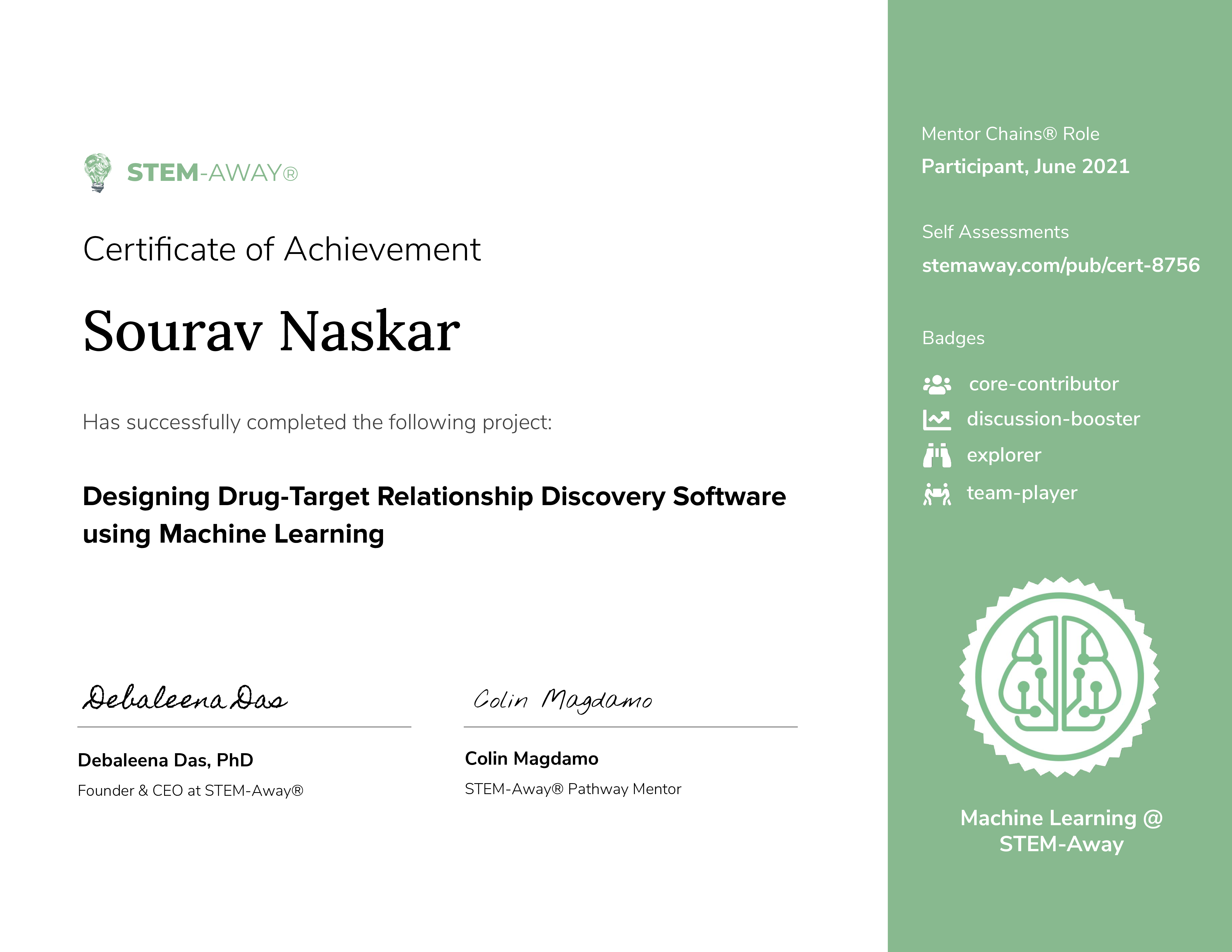 STEM-Away® Virtual-Internships Certificate September 2021