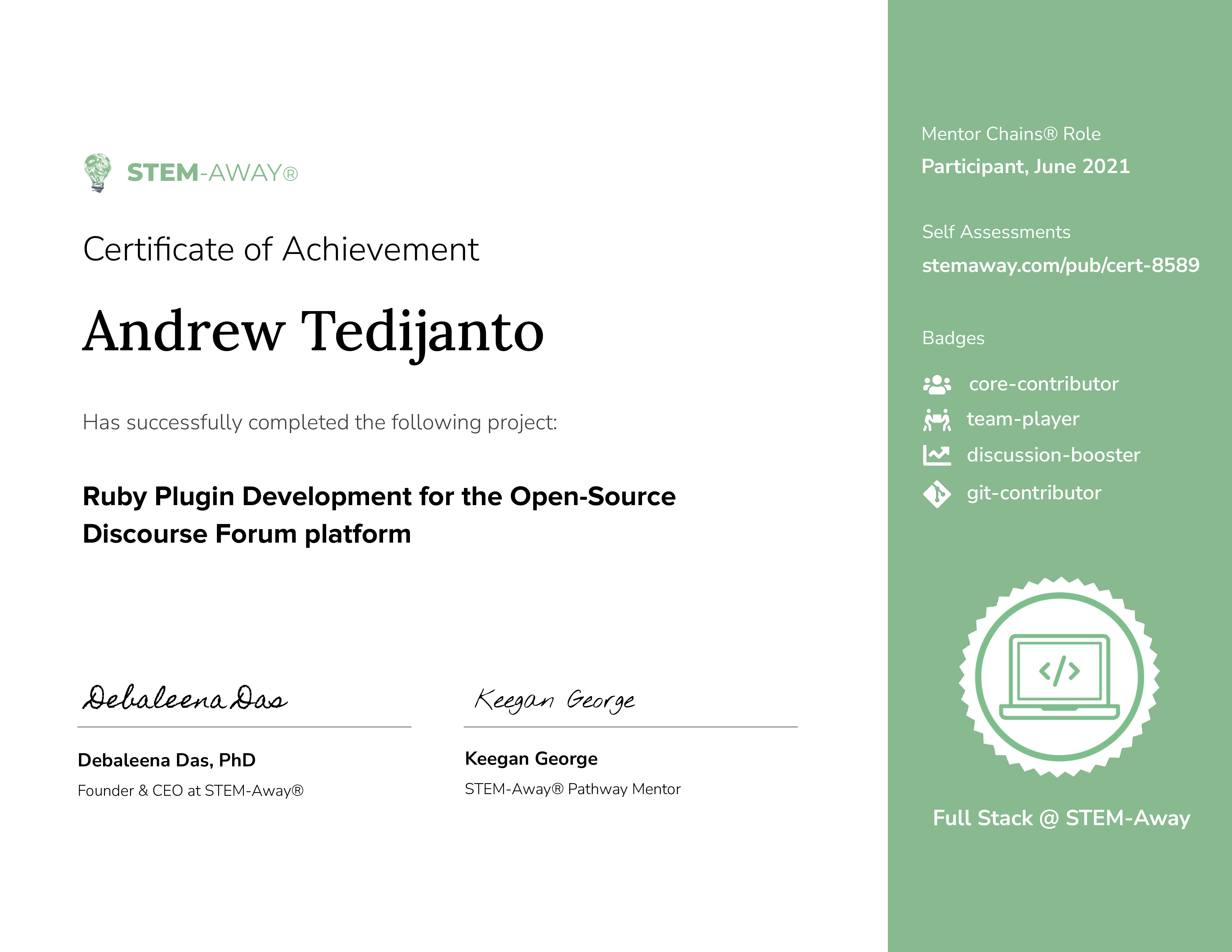 Mentor Chains® Participants: Self-Assessments are in chronological order and detail key components of the project and the student’s progress during the session.
