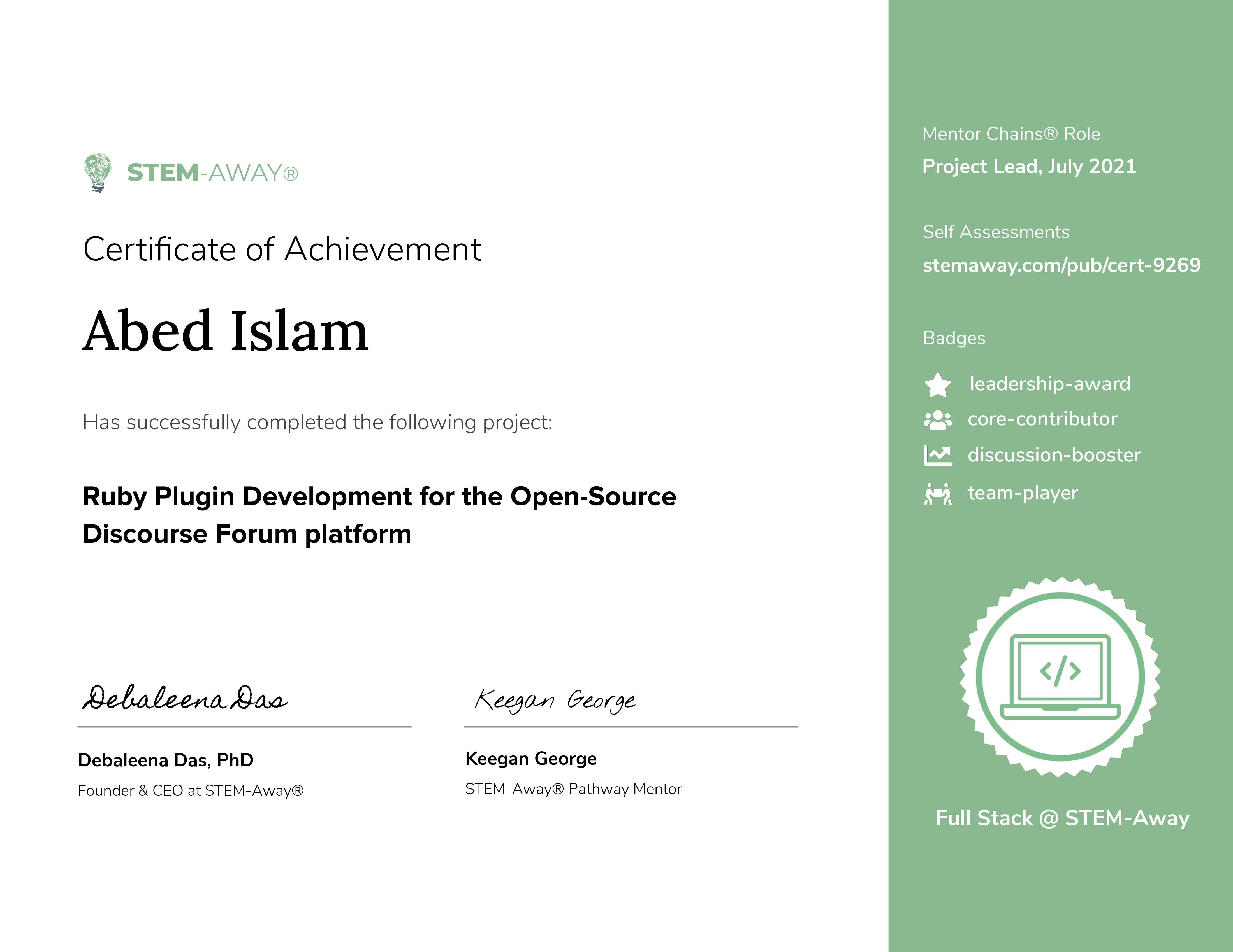 Mentor Chains® Leads: Leads have one or more self-assessments that cover their achievements as overall Project Lead, Technical/ Programming Lead or Project Management Lead.